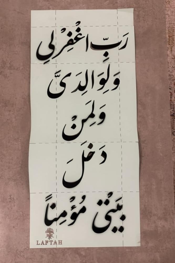 ديكور جداري مزين بعبارة "رب اغفر لي ولوالدي ولمن دخل بيتي مؤمنا " مباركة جميلة تزين مدخل المنزل .